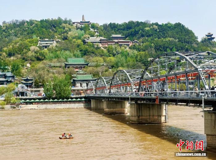 4月23日,气呼呼暖渐温的黄河兰州段迎去秋游暖潮,坐缆车、趁速艇、喂鸽子、领略羊皮筏子、趁坐黄河巴士等1系列黄河秋游名目吸收乘客。图为黄河速艇穿梭兰州中山桥。冯志军 摄