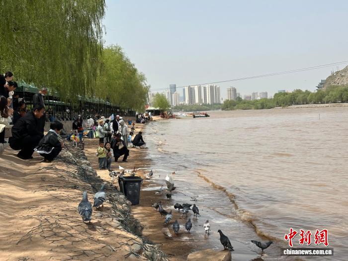 4月23日,气呼呼暖渐温的黄河兰州段迎去秋游冷潮,坐缆车、趁速艇、喂鸽子、领会羊皮筏子、趁坐黄河巴士等1系列黄河秋游名目吸收乘客。图为旅客正在黄河边玩耍。冯志军 摄